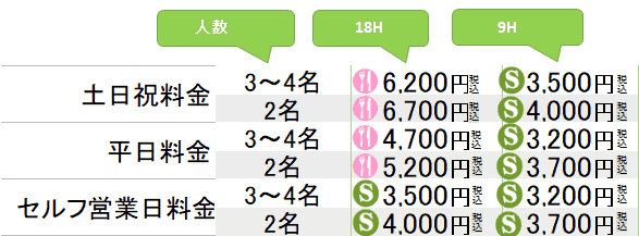 土日祝のハーフラウンド(9Hプレーにつきまして、 お支払いは現金のみの前払いとなります。 ご理解の程よろしくお願いいたします。 |